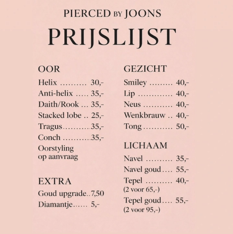 *alle piercings worden gezet met chirurgisch staal.